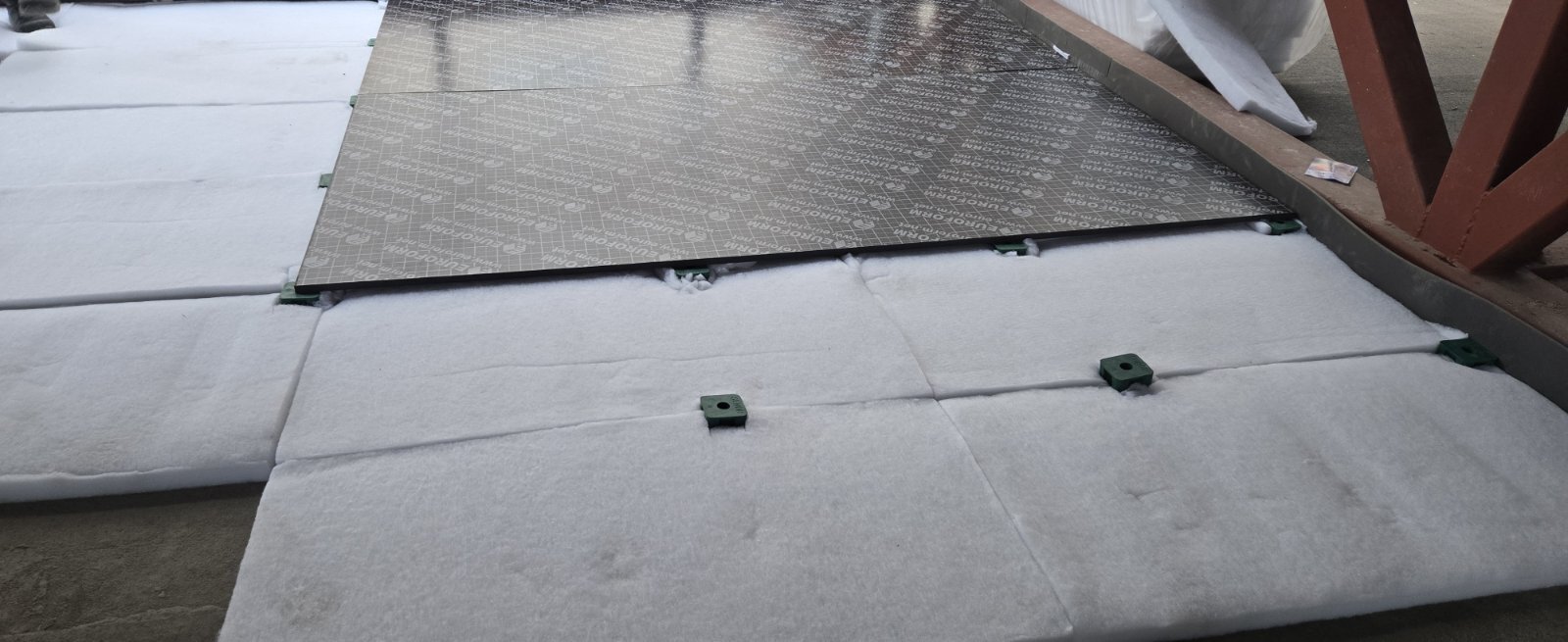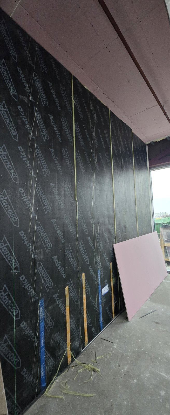 На пол также был уложен слой Acustidan 16/2 — тот самый акустический материал, который поглощает звуковую энергию и усиливает эффект шумоизоляции на всех частотах.